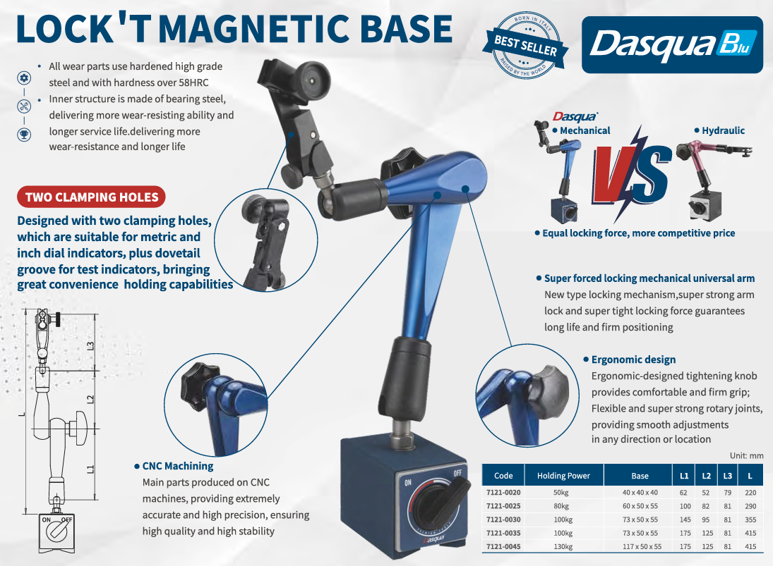 | 7121-0020 | 50KG "MAVİ SERİ" GÜÇLENDİRİLMİŞ MANYETİK STAND |