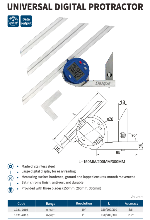 Dasqua Üniversal Dijital Açı Ölçer 1021-2005