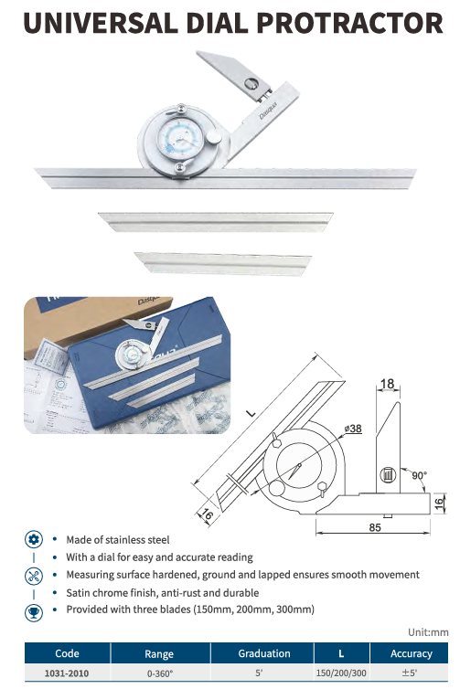 Dasqua Üniversal Saatli Açı Ölçer 1031-2010