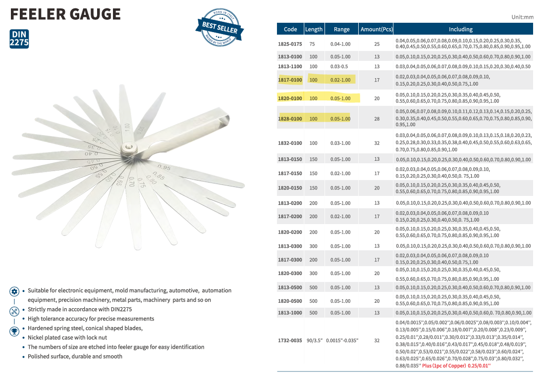 | 1820-0100 | FİLLER ÇAKISI 20 PARÇA 100mm / 0,05-1,00 |