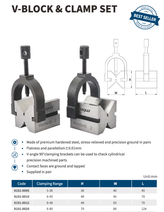 30x36x40x45mm KELEPÇELİ V BLOK SETİ