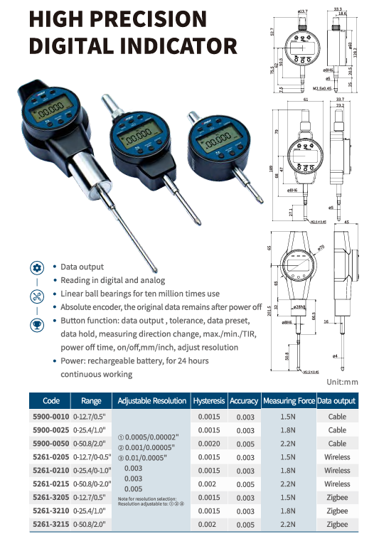 | 5900-0025 | 0-25,4mm YÜKSEK HASSASİYETLİ DİJİTAL KOMPARATÖR SAATİ 0,0005 |